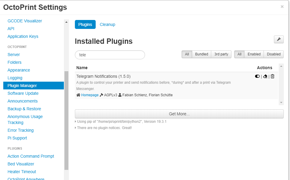 옥토프린트는 텔레그램 봇과 연동이 가능하다. 이외에도 push bullet 이라던가, 혹은 스파게티 디텍티브(기본 무료이나 유료)등으로 모니터링을 할 수 있다.