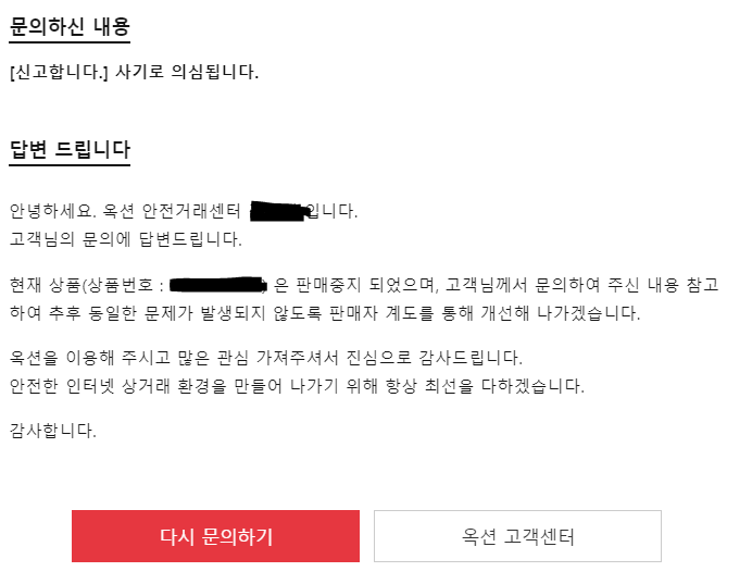 그런데 웃기는 점은 다시 문의하기를 했더니...신고센터로 가지는 않는다. 일반 문의하기이다. 이거? 왜그러는 걸까요?