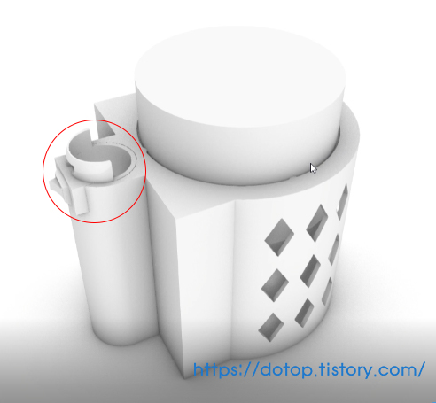 우선은 구매한 방향제 통을 간단하게 디자인 했다. 이후에 그 통에 알맞게 디자인을 하였다. 가운데 스샷의 좌측의 둥근 부분이 손선풍기의 손잡이가 들어갈 위치이다. 파인 홈은 USB Port가 위치할 예정이었다. 여기에 마지막으로 손선풍기 fan 부분을 달아주면 디자인 끝.