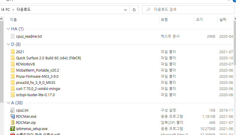 파일 갯수가 점점 많아지는 다운로드 폴더 같은 경우에는 그게 참....얄궂다.