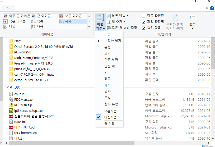 windows10 탐색기 정렬이 가끔 짜증날 때가 있다.